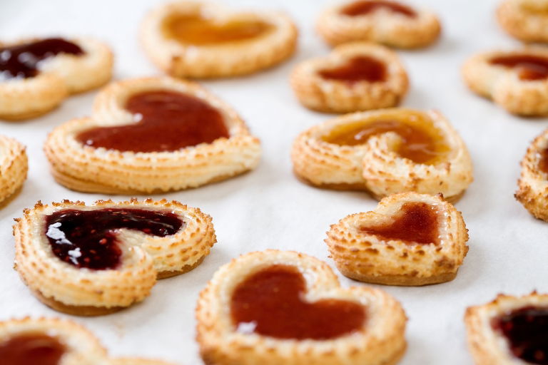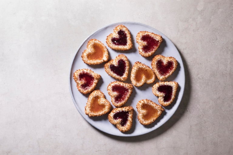 בצק פריך, כתר מרציפן וקונפיטורות תות-שדה ומשמש.