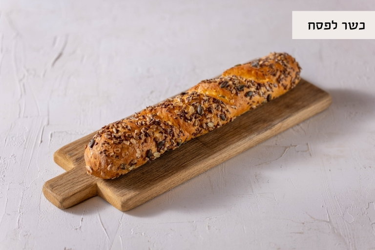 לחם צרפתי בשילוב גרעיני פשתן, דלעת וחמנייה, על בסיס קמח סויה.