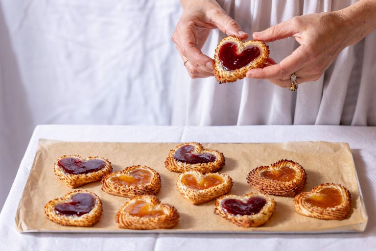 בצק פריך, כתר מרציפן וקונפיטורות תות-שדה ומשמש.