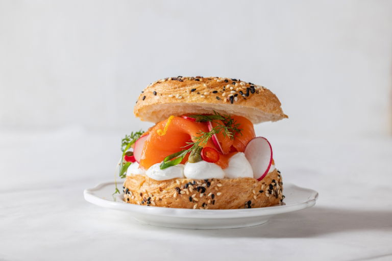 סלמון מעושן, גבינת שמנת, צלפים, צנווניות וגרידת לימון